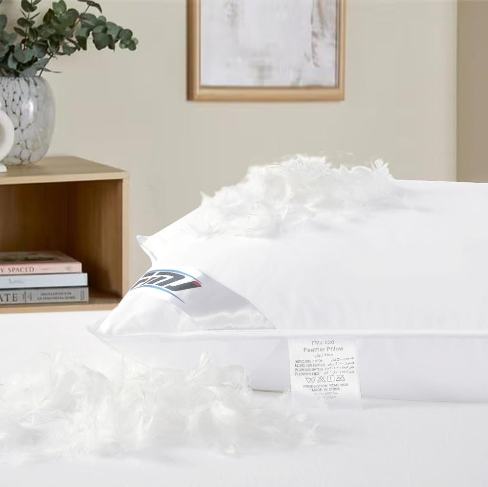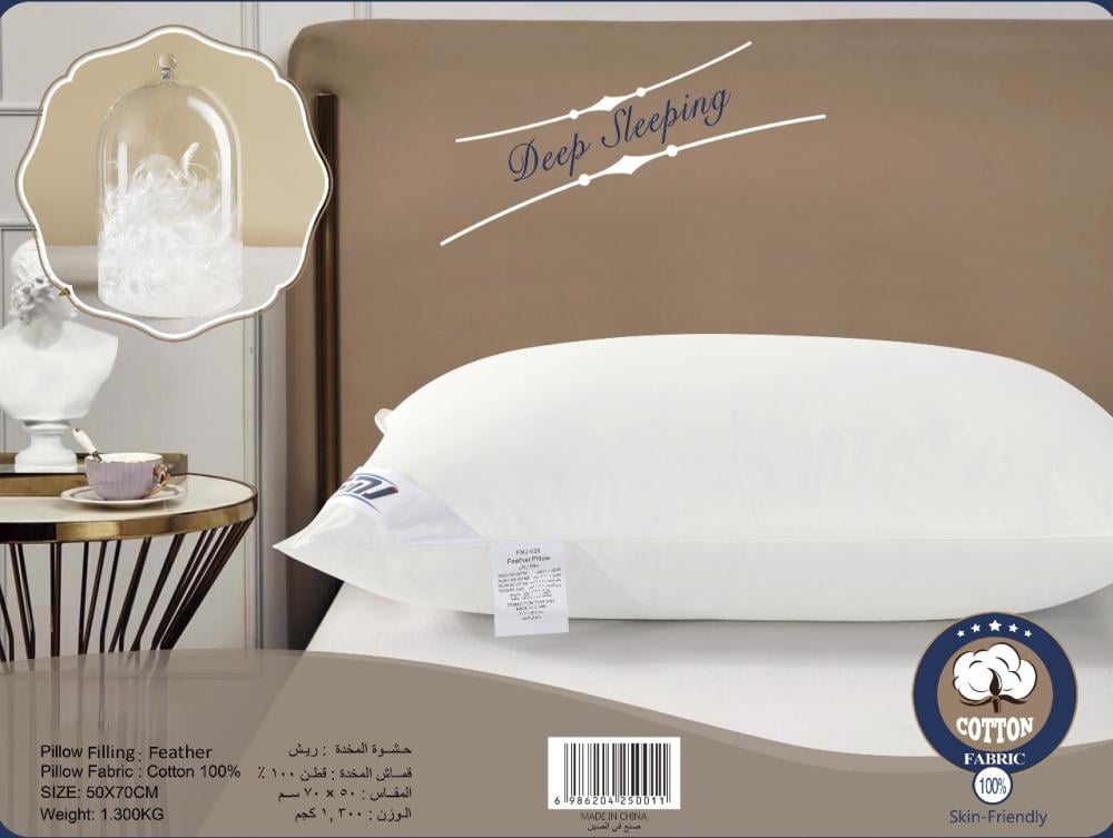 1- خامة ريش قطن عالية الجودة: توفر المخدة دعماً مريحاً للرأس والرقبة، مما يضمن نومًا هادئًا.
