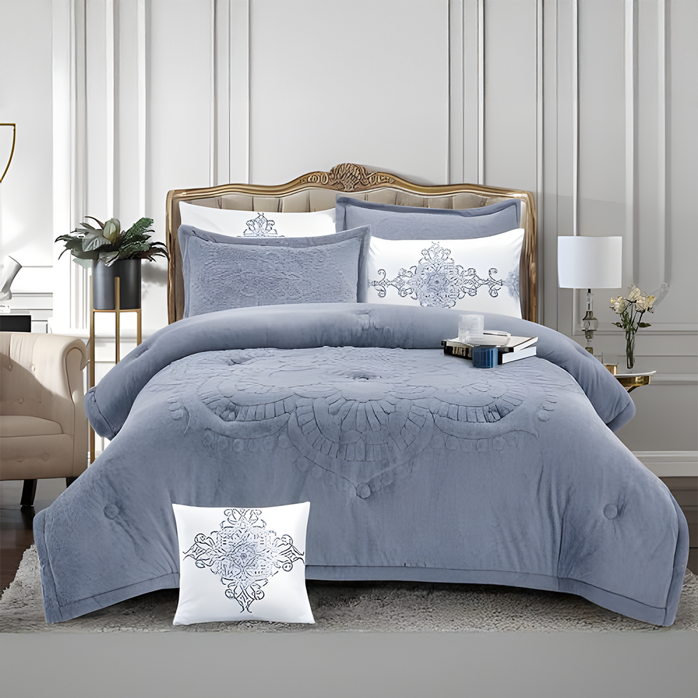 إذا كنت تبحث عن مفرش شتوي نفرين يوفر لك الدفء والراحة في ليالي الشتاء الباردة فإن مفارش جمانة مخمل 7 قطع نفرين تعد هي الاختيار المثالي لك حيث يجمع هذا الطقم بين الفخامة والنعومة بفضل خاماته العالية الجودة ويُعد الخيار الأفضل لجعل نومك أكثر راحة واسترخاء.