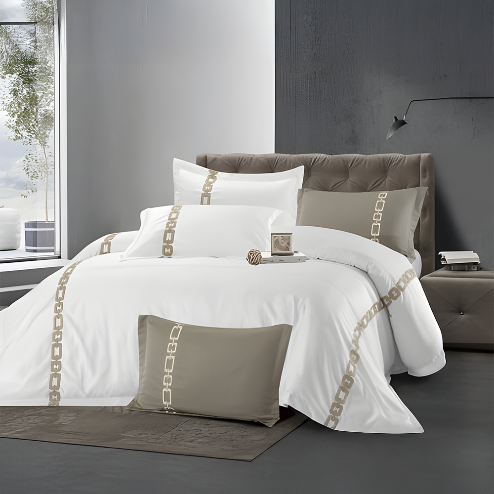1- تصميم فندقي مطرز يضفي لك لمسة من الفخامة والهدوء.